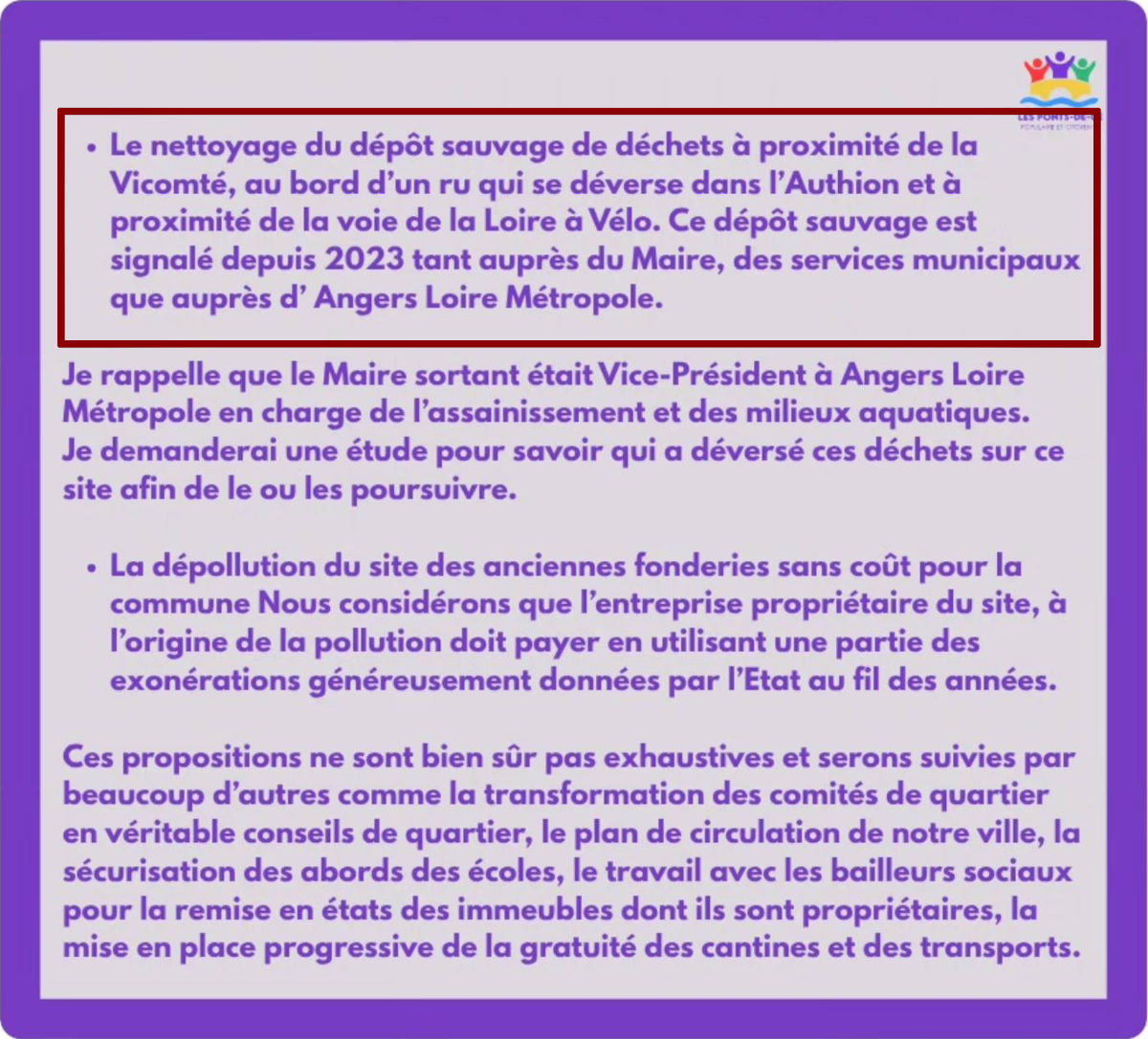 Merci à Florence Raymond Augier élue aux Ponts de Cé d'avoir parlé du dépôt sauvage de la petite Vicomté en plein conseil municipal