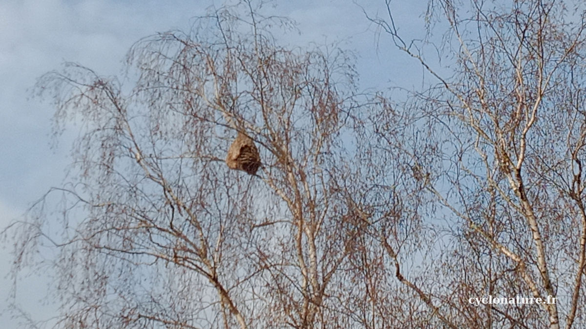 Les 3 nids que j'ai vu se trouvent à l'entrée du parc de la Paperie à Saint Barthélemy d'Anjou coté rue du 8 Mai 1945, un autre dans les grands carreaux à Trélazé et le troisième (photos ci dessous) proche du vieux fond de la Brémandière à Trélazé.