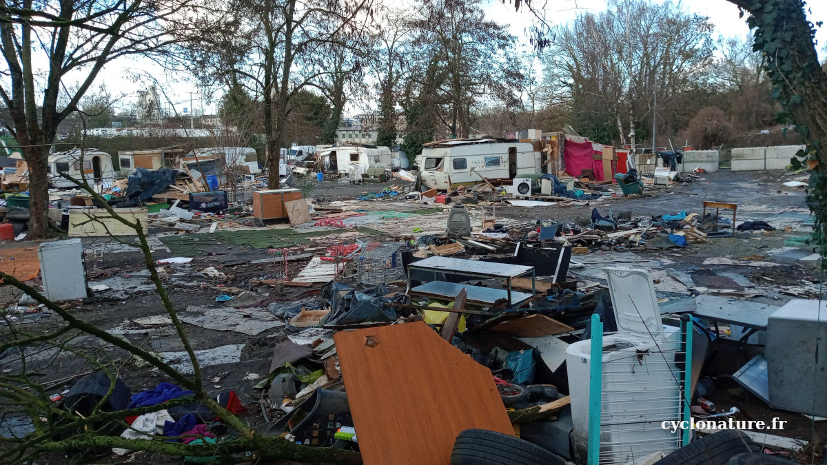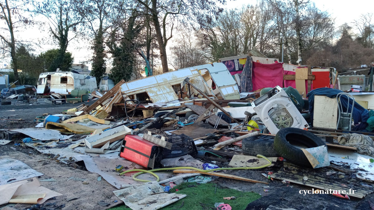 Enfin relogés dignement dans des bungalows, les roms après leur départ laisse place à des tonnes de déchets sur leur ancien camp.